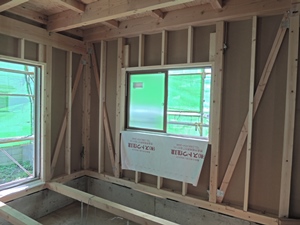 外部はこれから透湿防水シート(タイペック)を貼っていきます。内部はそろそろ電気屋さんが入る感じです。