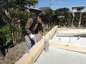 基礎もきれいに出来まして棟梁の村岡大工 の出番です。