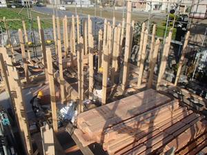 それから2階の管柱、梁、小屋束、母屋、棟木、垂木と組んでいきます。