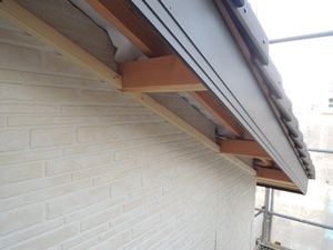 ↑玄関庇に化粧の腕木を取付しました。