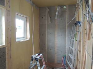 さていよいよ断熱工事のセルローズファイバーの吹付けになります。