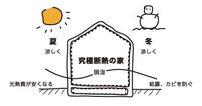 一般的なご家庭(ご夫婦・お子様お2人)であれば、夏・冬の冷暖房使用量が5分の1〜3分の1程度に納まります。環境にも、家計にも、やさしい暮らしが可能になります。